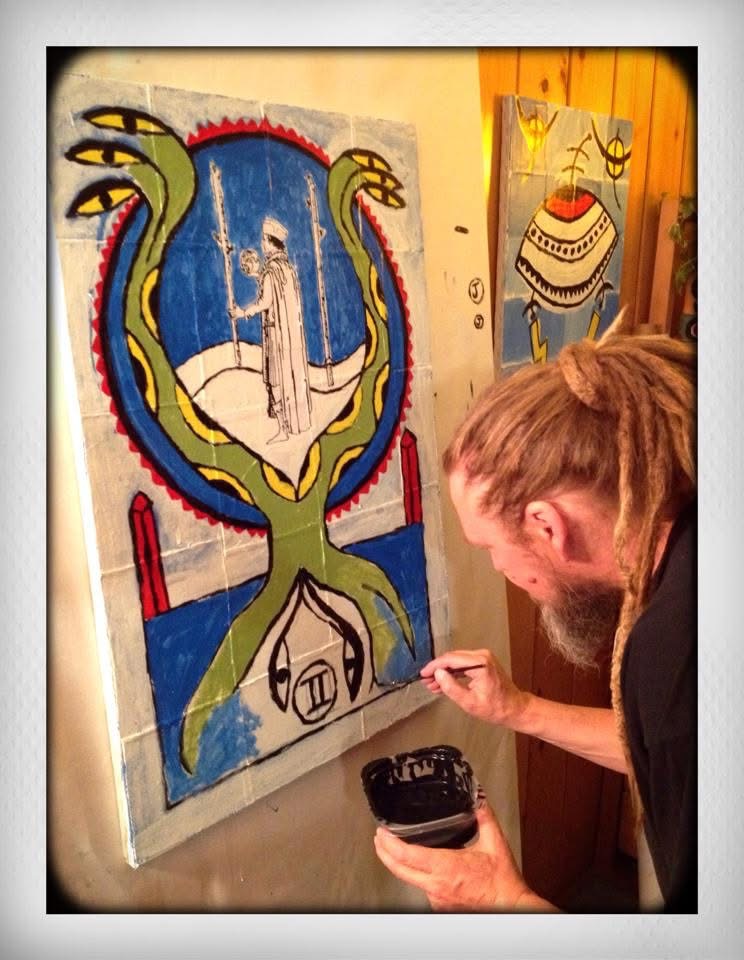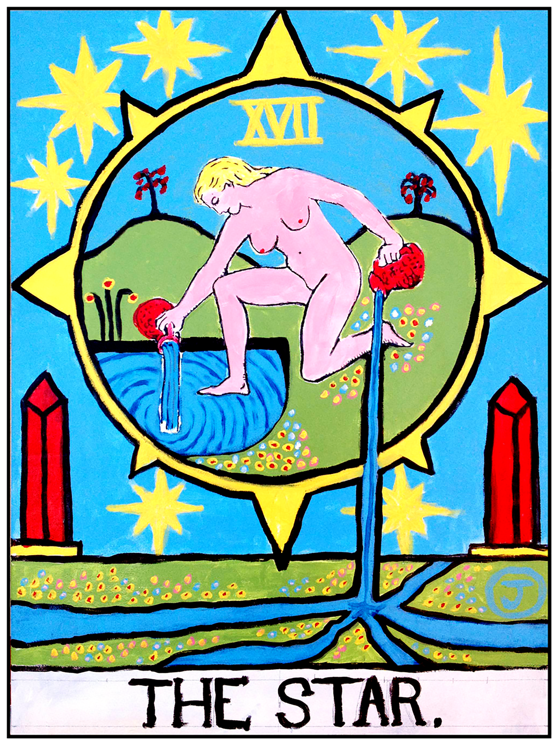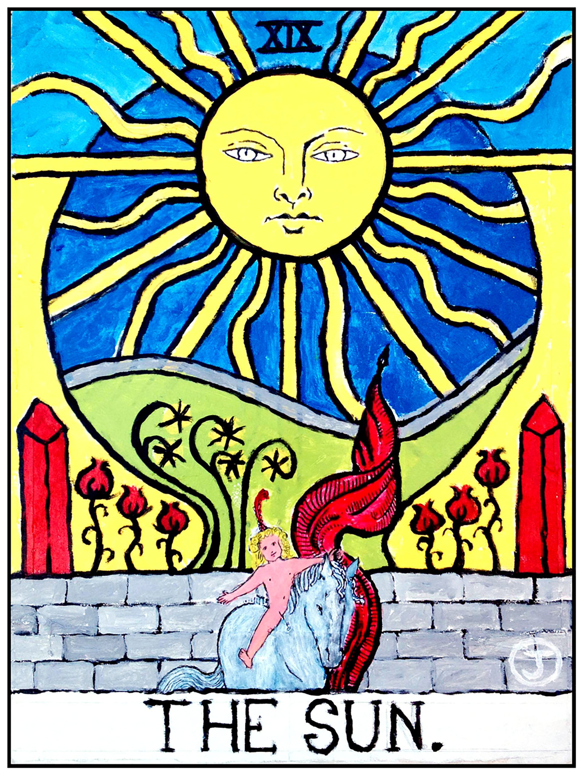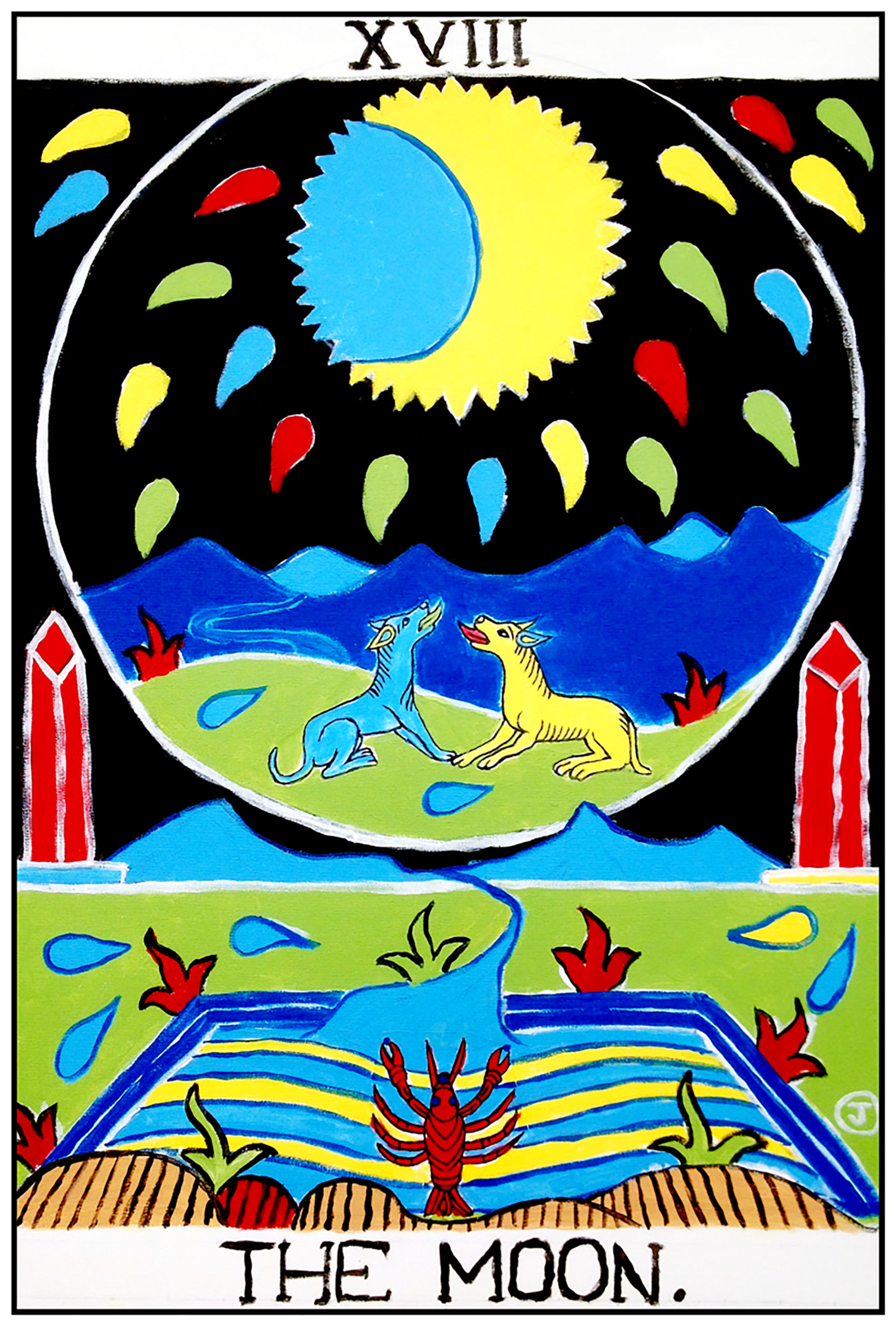 Using colored pencils, photocopies, acrylic paint, and pen and ink, I set out in 2008 to explore the realms of the mystics by following my imagination and intuition. This collection is a small selection of the work involved in doing this exploration. Each piece is a meditation of sorts on the subject of mysticism, whether that’s found in the stars, in the leaves and roots of the World Tree, or in a spread of tarot cards…