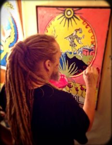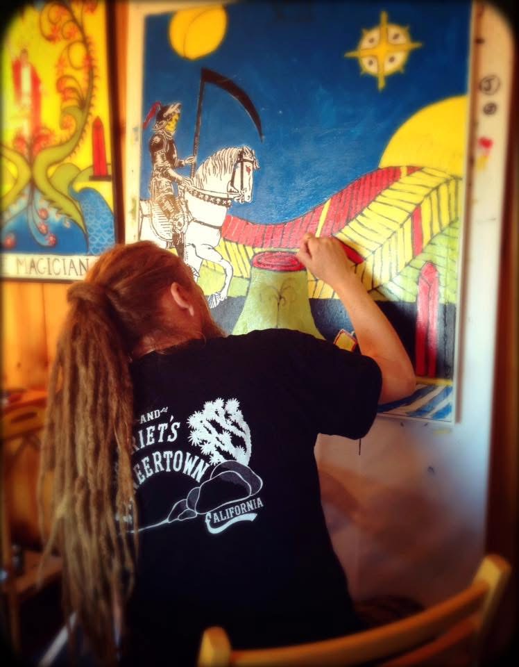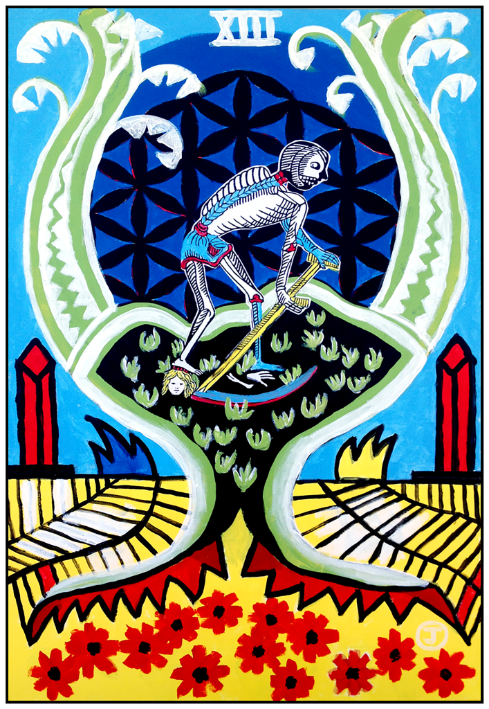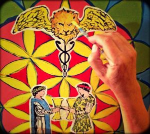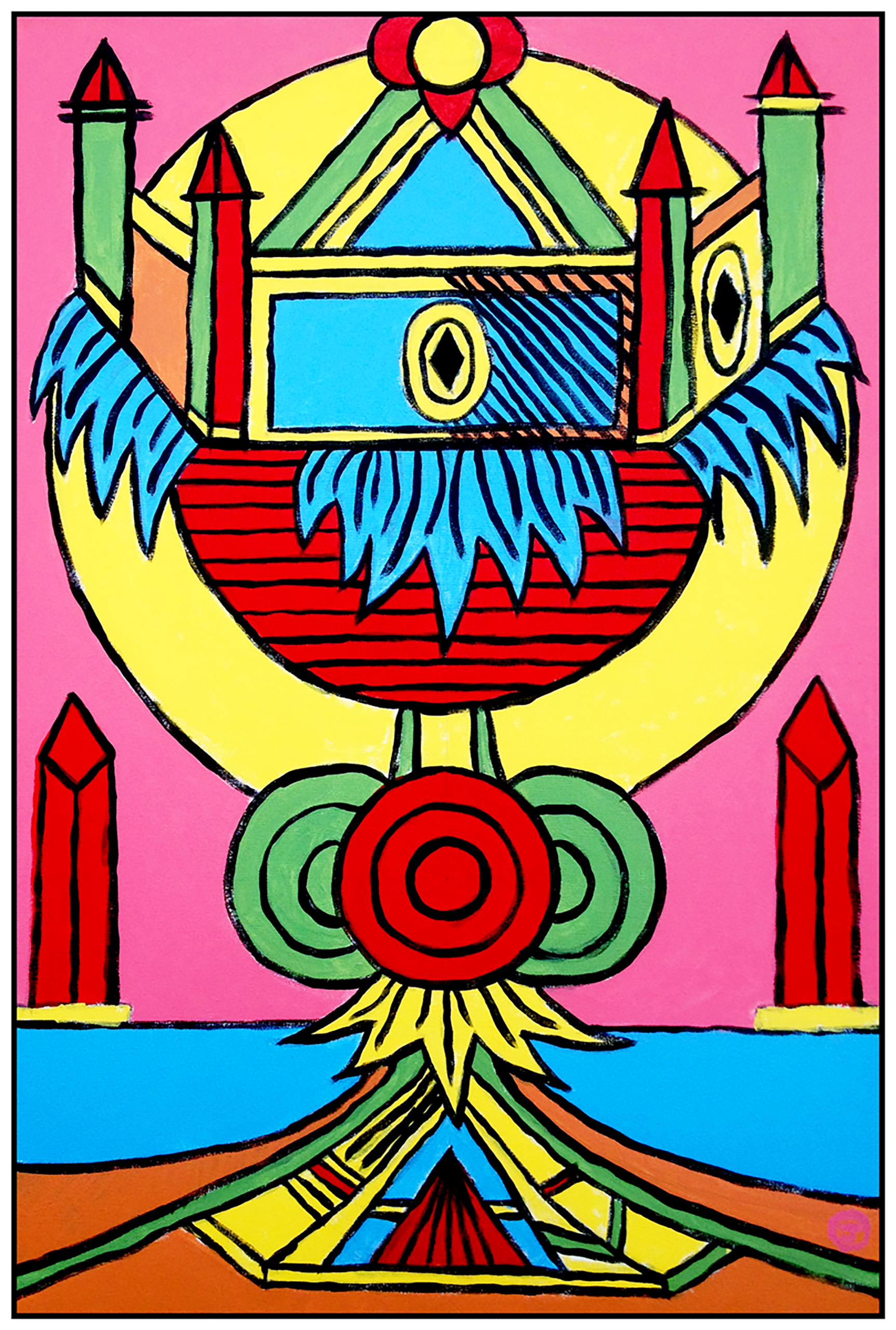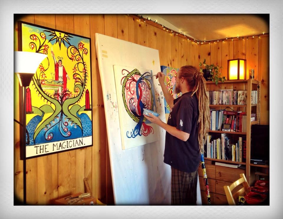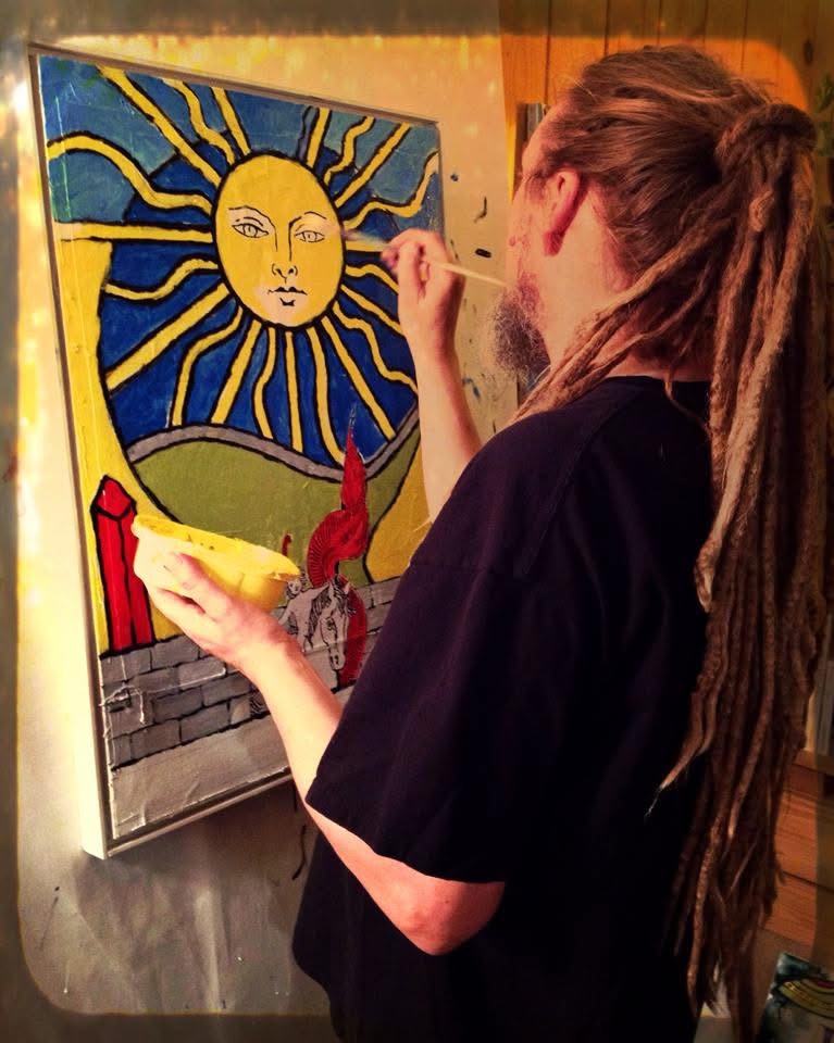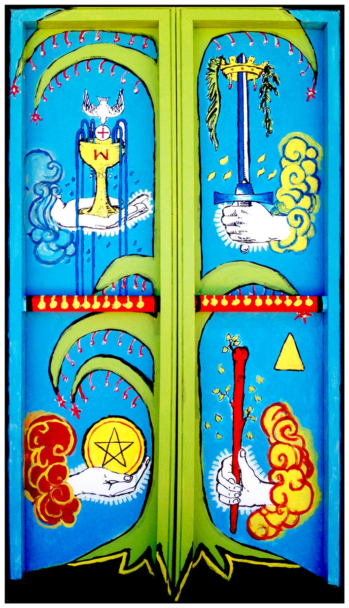 Using colored pencils, photocopies, acrylic paint, and pen and ink, I set out in 2008 to explore the realms of the mystics by following my imagination and intuition. This collection is a small selection of the work involved in doing this exploration. Each piece is a meditation of sorts on the subject of mysticism, whether that’s found in the stars, in the leaves and roots of the World Tree, or in a spread of tarot cards…